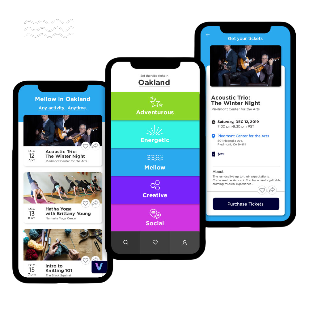 The concept for this app came from the desire to have a more streamlined way to look at events in a big urban city like New York City, where the options are overwhelming and there’s everything under the sun that’s available to try and experience. Wouldn’t it be nice if there was a way to filter by the energetic quality, the kinds of events you’d like to attend? Where setting the vibe right was just as important as the event itself.